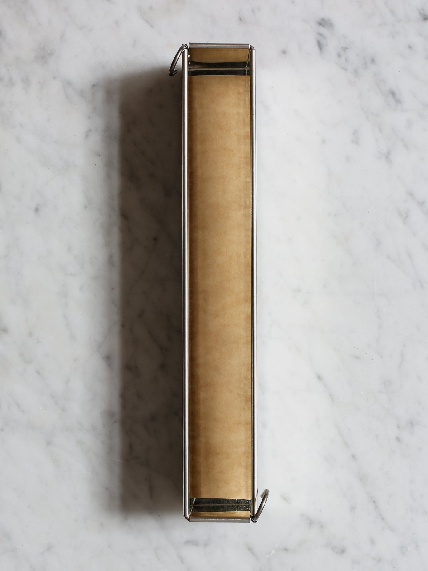 Made of French tin. For petit pâté en croûte. Measures approximately 300 x 40 x 60 mm.